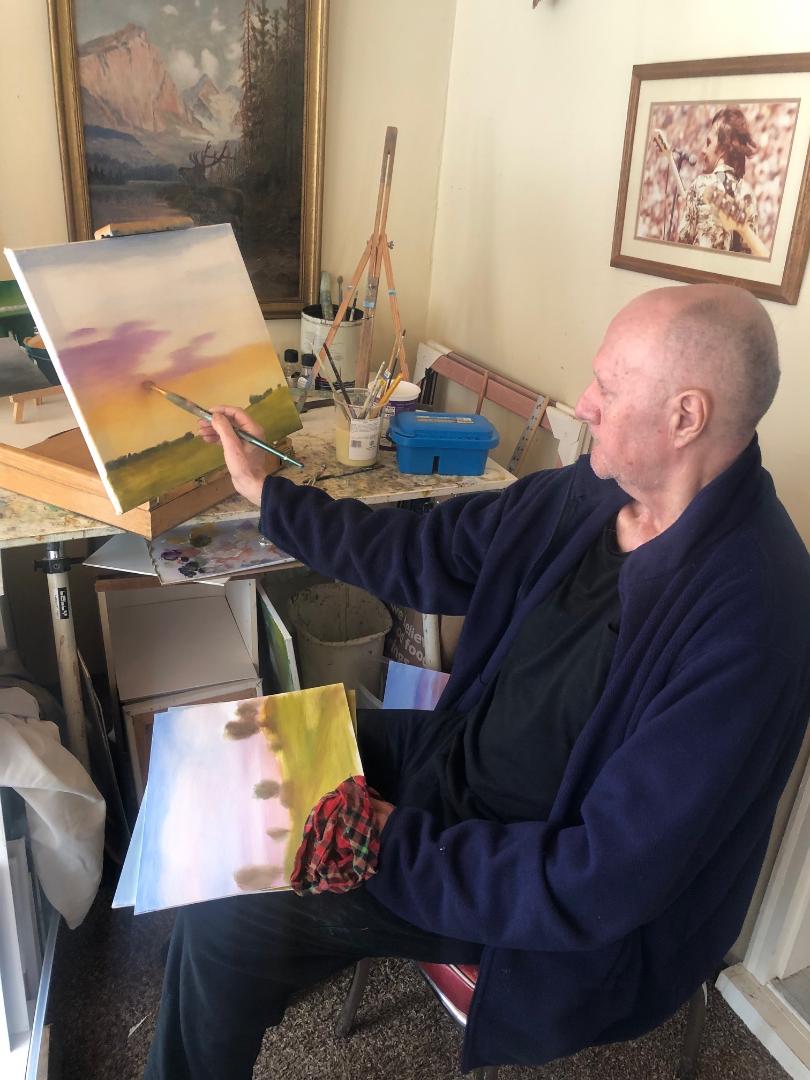 He's been painting and drawing, playing a little guitar and harmonica, and still writing some songs.