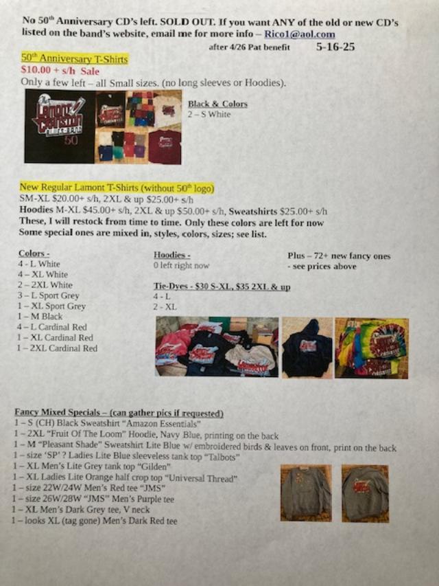 Now that the big benefit & fundraiser is over, this is what is left of the inventory of Lamont Cranston Band t-shirts. I'll be counting any LP's and CD's left over as well soon.
